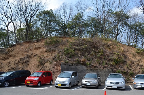 足羽山で一番高い場所(標高116.4m)で、測量時に使われる三角点があります。古墳の半分は削られて駐車場となっています。