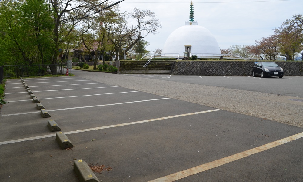 福井平和塔(仏舎利塔)付近にある駐車場です。博物館まで10分ほど歩きます(階段はありませんが、坂の上り下りがあります)。