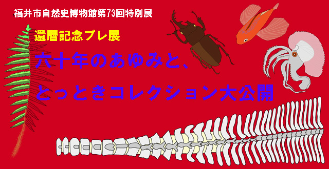 | 福井市自然史博物館ホーム>第73回特別展『還暦記念プレ展 六十年のあゆみと、とっときコレクション大公開』 |